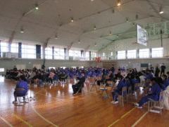 11月13日(木)にいじめ見逃しゼロスクール集会を実施しました。三和小学校の6年生を迎え、お互いに関わり合うなかでいじめを「許さない」「見逃さない」意識を高めました。小学校と中学校それぞれの取組を発表したり縦割り班で交流したりすることで、いじめを生まない学校にするためにどうするべきかを考えました。