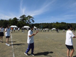 9月28日(日)三和中学校グラウンドを会場に、第19回さんわ体育祭が盛大に行われました。中学生7名が、用具係として備品の準備や後片付けに取り組みました。用具係の責任者の方からは、「すすんで手伝っていただき、大変ありがたかったです。気持ちの良い中学生でした」と喜んでいただきました。